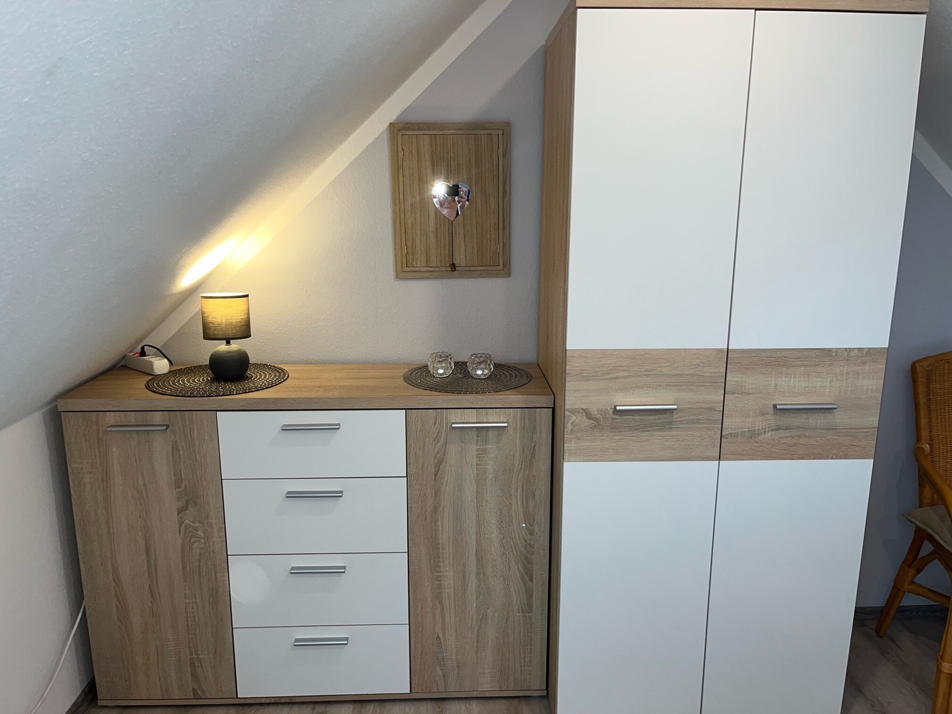 Die 50m2 Wohnung befindet sich im 1. Obergeschoss. Durch ihre clevere Aufteilung mit 2 Schlafräumen sowie Wohnraum mit Kitchenette ist sie ideal für 4 Personen.